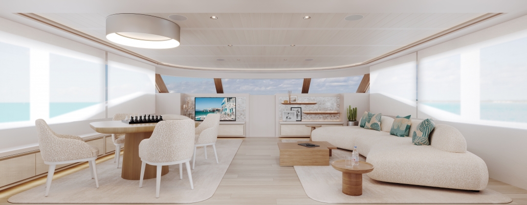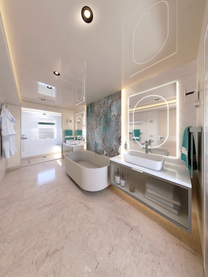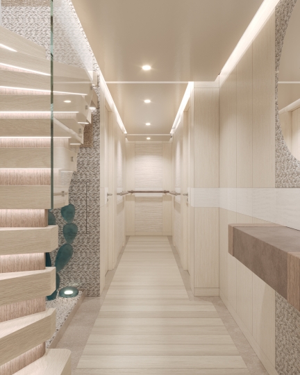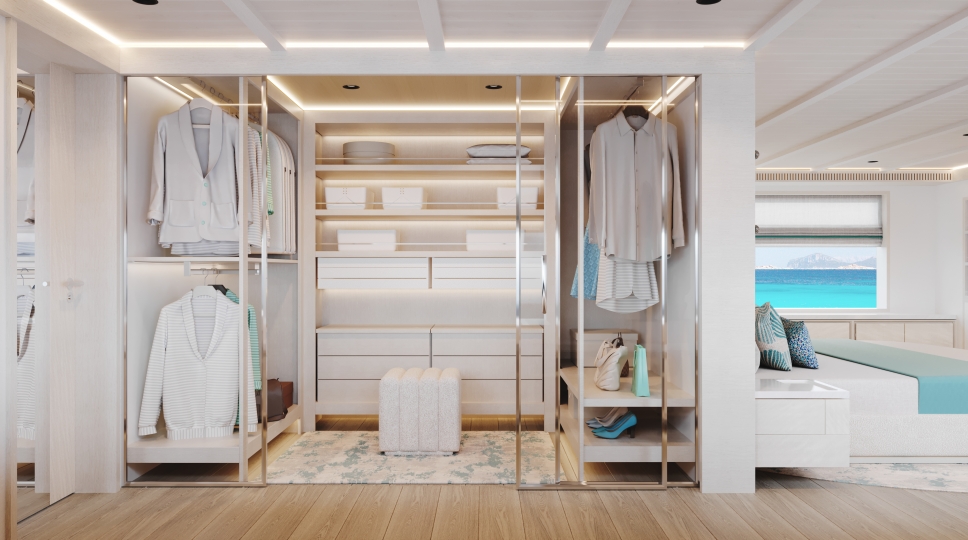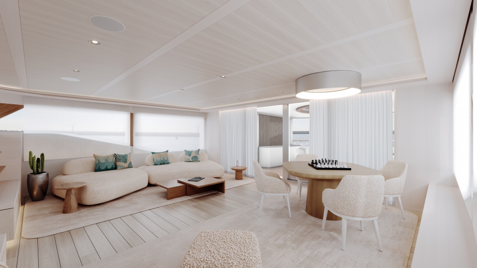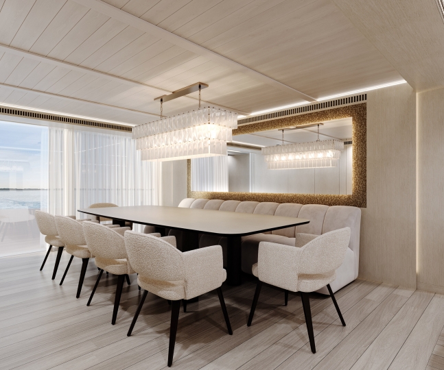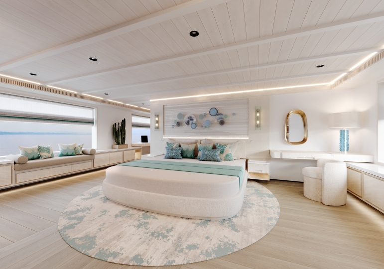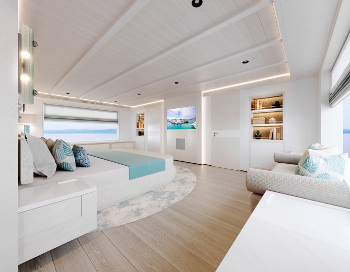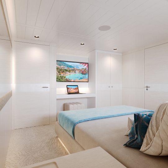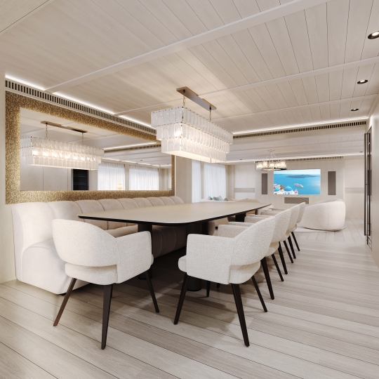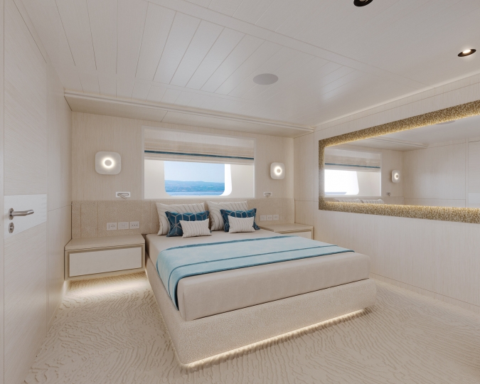 This avant-garde 50-metre superyacht is deliverable in just two years. With elegant yet sporty exterior styling, she packs a punch in terms of performance, aesthetics and onboard features. The combination of aluminium and Sealium alloys for the construction ensures a light, robust and easy to maintain vessel. When paired with a Hull Vane for maximum stability and efficiency, she boasts a top speed of 16 / 21 knots and transatlantic range. Onboard features include six luxurious guest cabins, two fixed balconies in the master stateroom, whisper-quiet propulsion, a touch-and-go helipad, and interior design by Claudio Pironi. She is the perfect yacht for cruising the Seven Seas in style.