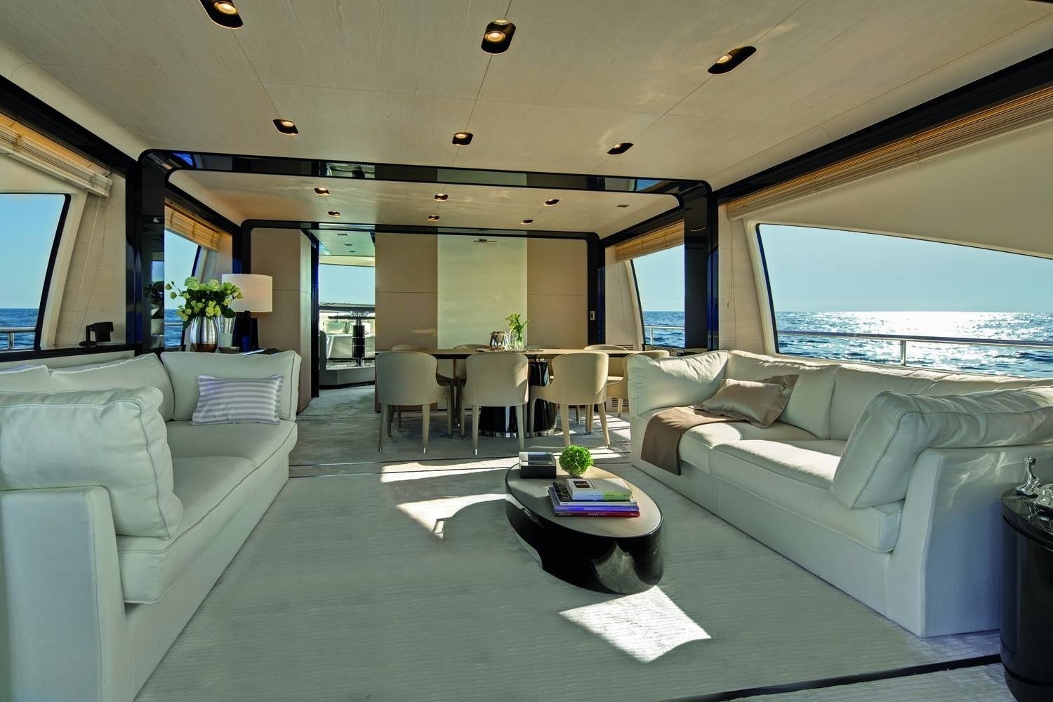 - The salon and dining is a contemporary open plan, with the generous lounge aft and formal dining forward