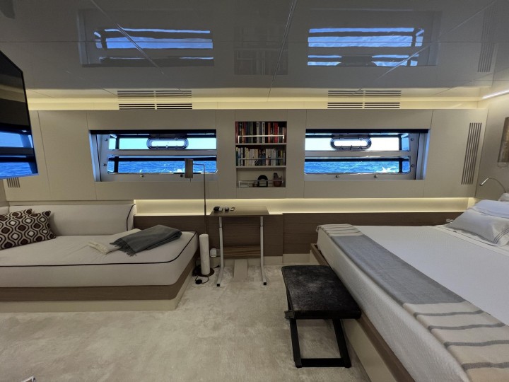 PRIVATE GG is a 35.0 m motor yacht, built in Italy by Arcadia Yachts and delivered in 2021. She is one of Arcadia 115 models and one of the most eco-friendly production yachts available on the market. She has the image of a fortress of the seas, but on the motor yacht PRIVATE GG you will be surrounded by 160m2 of luxury and elegance. This yacht is not only comfortable and luxurious, but also offers an ecological cocoon, covered in solar panels that give even more charm to the spaces bathed in natural light. The yacht features an oversized battery pack, ideal to enjoy a night at anchor without the noise of the generators.