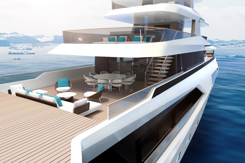The Global 550 is a next-generation go-anywhere explorer that sails boldly into the most exclusive areas of the world. This yacht is about unrivalled efficiency and low impact operation. This is achieved with the lightweight, all-aluminium hull, which hardens in the cold, and sophisticated naval architecture that allows this yacht to reach 16 knots and maintain a range of 5,000 nm with just two 625 kW engines. The remarkable part about the engines, apart from their size, is their heavy duty rating, which allows for extremely long range passages. She also comes with advanced exhaust filters, massive freshwater storage and a sewage treatment system that fulfills the stringent requirements for navigating the Great Lakes, Alaska and MARPOL Special Areas, meaning that she can go without unnecessary bunkering.