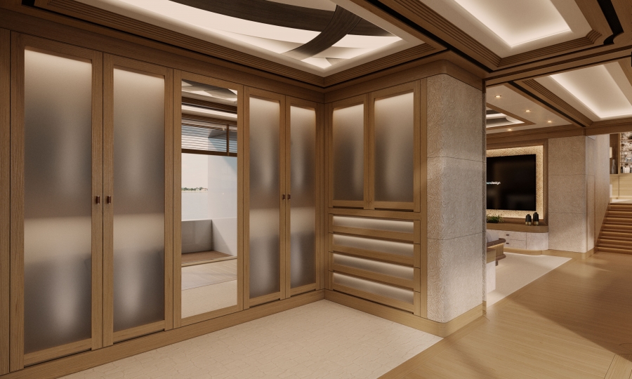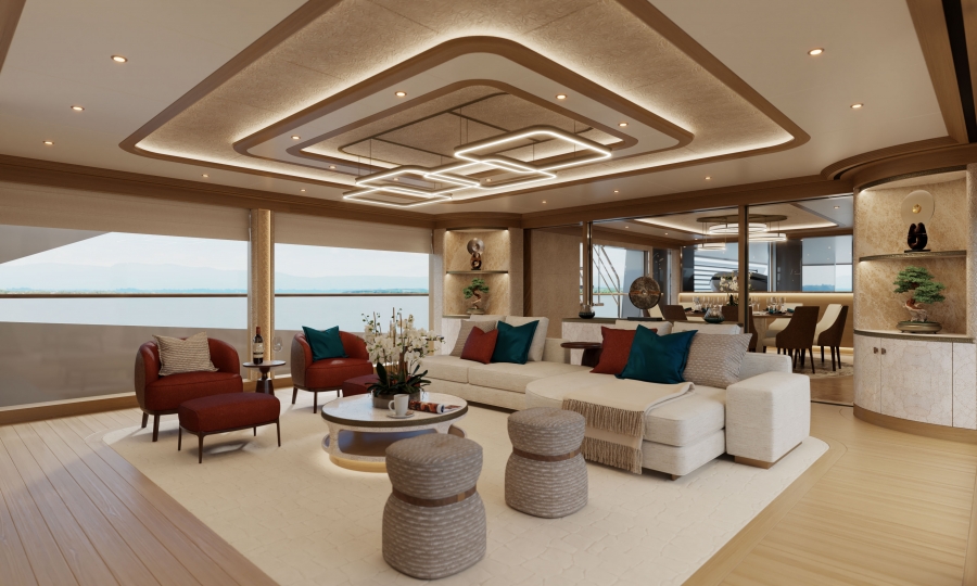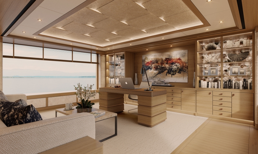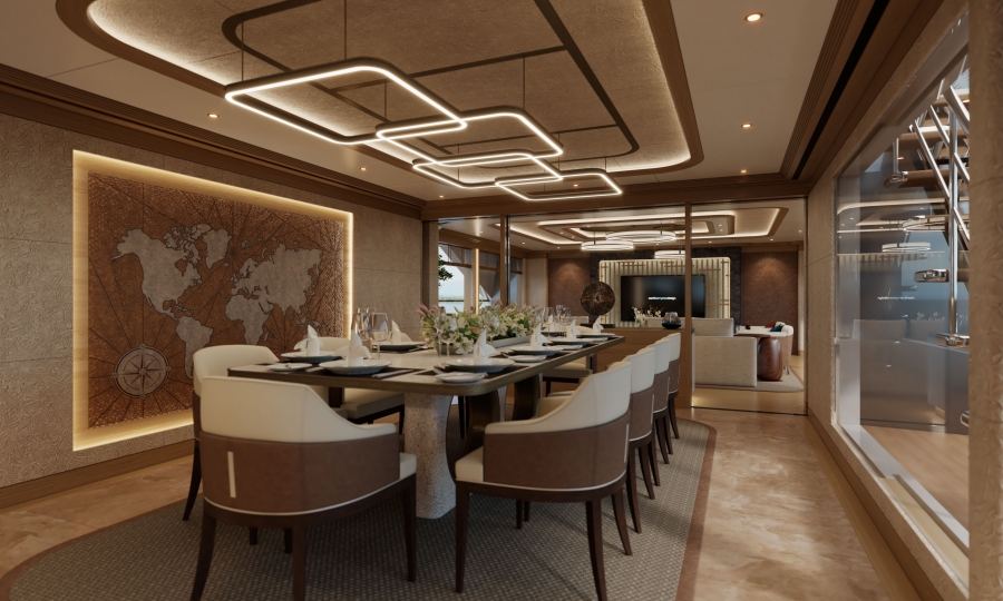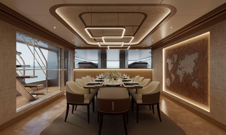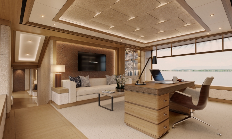 As a true explorer, the layout features plenty of opportunities to take in all the sights, with observation lounge on the crow’s nest at a height of 11 metres, complete with a steering station, and another one on the sundeck. The master stateroom on the main deck comes with a spacious personal office that doubles as another observation lounge. The Global 550 combines exploration with wellbeing and features spa with sauna and hammam in the transom. The yacht also boasts a fully commercially helipad on the main deck allowing to carry your own helicopter for further mobility and safety. Lastly, she comes with stylish, eco-minimalist interiors that integrate the untamed landscape into this one of a kind luxury explorer, making you feel truly at home in nature.