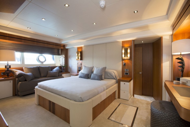 - Fantastic fly bridge with hard top and retractable inner canopy and generous sunbathing areas