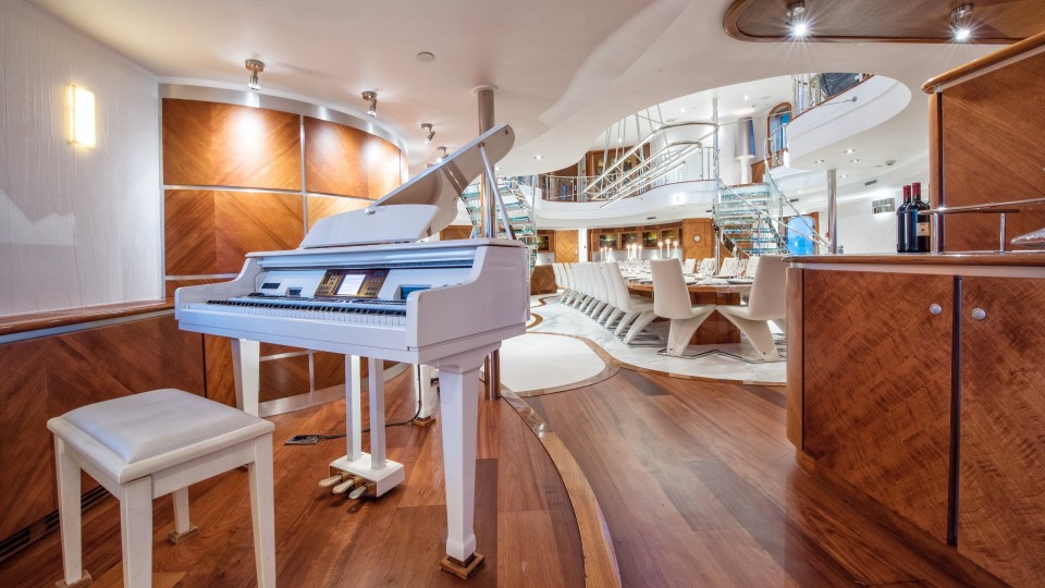 - Sherakhan boasts an onboard health cub with beauty salon and spa